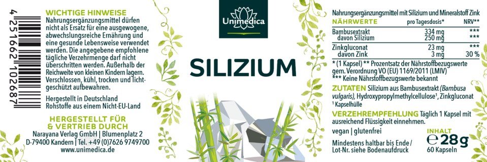 250 mg Silizium + 3 mg Zink pro Kapsel